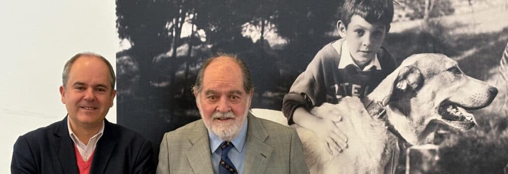 Desde el primer momento quisimos hacer posible ese reencuentro. Organizamos con ilusión una jornada pensada para que Jaime y su hijo Ignacio pudieran revivir recuerdos, recorrer el colegio y compartir su historia con las nuevas generaciones. Además, gracias a la generosidad de un amigo de la familia, que prestó un perro muy similar al que aparecía en la fotografía original, fue posible recrear aquella imagen histórica. El momento fue especialmente emotivo: pasado y presente se unían en un mismo gesto, reflejando la continuidad de una comunidad que crece sin olvidar sus raíces.